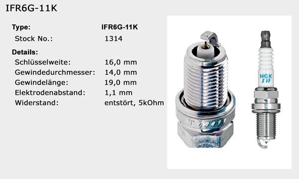 - NGK Zündkerze IFR6G-11K Iridium 1314